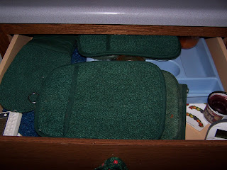 So I decided to take the drawer that’s under this cabinet, which is next to the stove as the spice drawer. It had pot holders, candles, and an empty drawer organizer in it. yeah, lol the organizer was empty. lol It used to hold utensils, until I put them on the counter in a glass jar. the drawer before…
