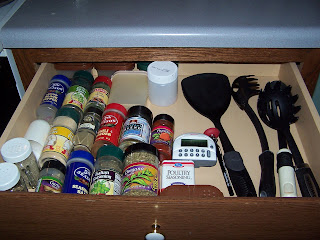 I think the spice drawer will work out well. The only cooking I did yesterday was helping Hannah make lunch. And I did use spices out of the drawer. 🙂