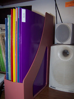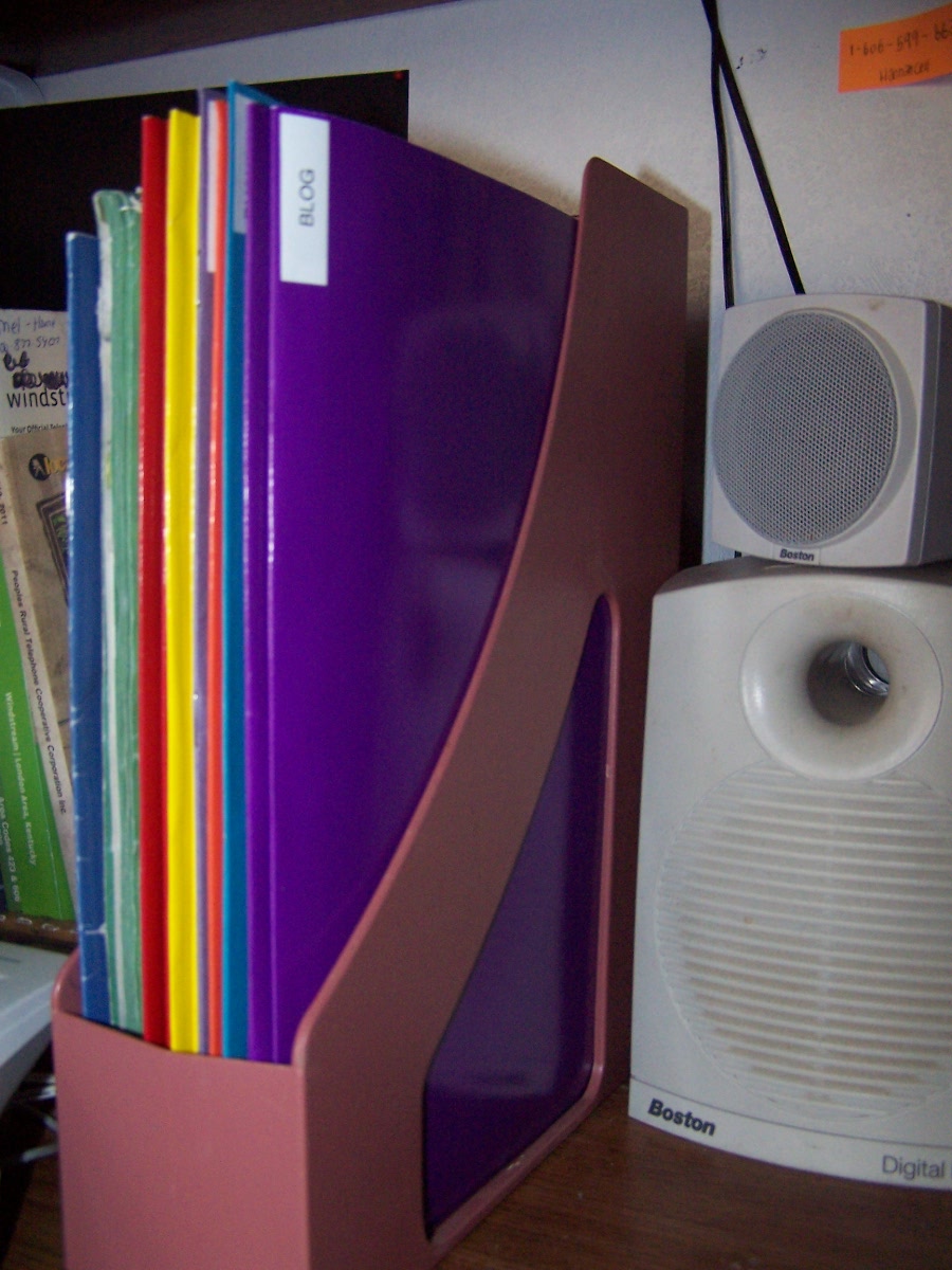 I made these about 3 weeks ago, and they work very well. These folders really help us keep the desk cleared off.