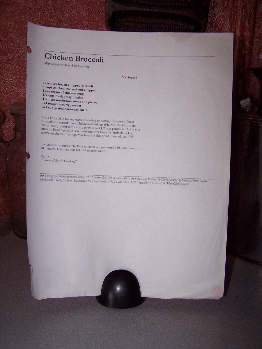 Holding the recipe up makes it much easier to read. And it keeps the recipe clean.