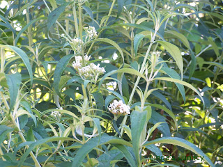 The first blooms on the Butterfly Bush. This is the white one that is in front of the house.