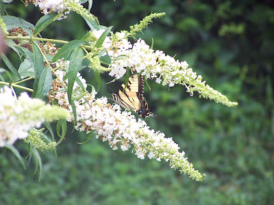 The Butterfly bush is living up to its name, and attracting lots of butterflies. This one is on the big white butterfly bush right outside our front door. It’s pretty cool to be able to look the living room windows and see lots of butterflies on the bush.