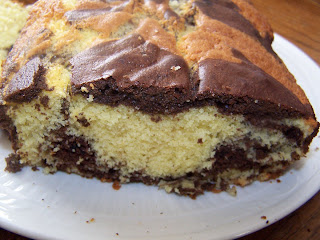 Wow, your swirl on the top looks so pretty. Plus, the finished cake looks delicious. Two flavors equals more to love.