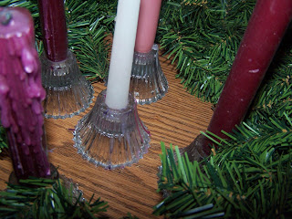 If you don’t have a wreath, you can get evergreen branches outside, or make a wreath out of wood. Or even just put the candles in a circle with the white one in the center. You can start celebrating Advent for just the cost of the candle sticks, using one of the free Advent readings linked below.