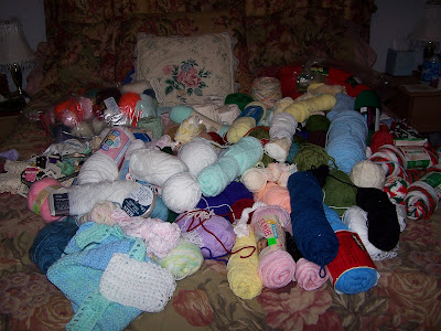 So, what am I going to do with my freeday? You see where I am now, don’t you? lol I need to finish updating my project page. Then I’m going to make a crocheted rug. There was some rug yarn in the very large bag of yarn that G~ gave me. See all the yarn?