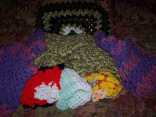 This week Calen has an appointment at the oncology clinic. And I was soooo far behind in my afghan making for them. So for my tackle this week, I crocheted like a mad woman. Since last Wednesday morning, I made 8 afghans, start to finish. I also finished 2 afghans that I had already started. These are lap afghans for the kids to use in the clinic.
