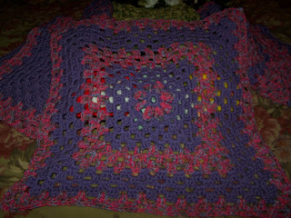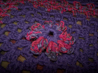 Here’s one of them unfolded. I used Susan’s Puffy Flower Afghan Sqaure pattern that she shared for all the purple and pink afghans. Even though they don’t look purple and pink in the pic.