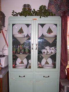 Today, I decorated the cabinet in the dining room. Here’s a before pic: