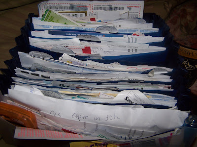It was really a check file to start with. I used envelopes inside each catorgary to help keep the coupons sorted out. I really hated standing in the store shuffling through a pile of coupons looking for the right one. And then to find it had expired made me really upset! See what a mess it was?
