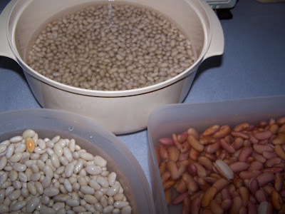 Last week, I cooked beans to have in the freezer. I cook a 1 pound bag of red kidney beans, a 1 pound bag of navy beans, and half a bag of great northern beans.