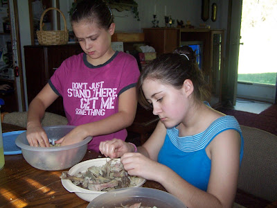 I did have some chicken helpers to get the meat off the bones. I hate that job. Unfortunately, so do they.