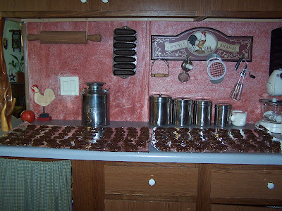 UPDATE – 6:00 A double recipe of oatmeal raisin cookies made 11 dozen and 4 cookies. I put 3 dozen in the cookie jar and the rest are going in the freezer. The double no bake cookie recipe made over 100. People were eating them before I got an exact count.