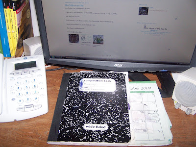 I keep a composition book by the telephone and computer. I write all the telephone messages in it. Messages for other people, prayer requests on our churchs prayer chain, and when the prepaid cell phone provider calls with codes to get extra minutes I write it all in the phone log.