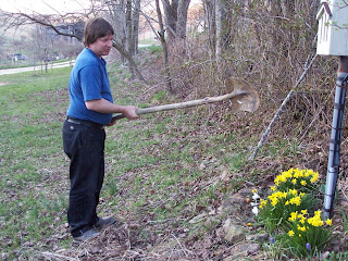 This is the whole “front bulb garden”, that’s what we call it. Because it’s in the front, and it’s all bulbs. lol Very original, I know. lol That’s a butterfly house hanging on the old satellite post. We have yet to see any butterflies actually living in it. Maybe this year.