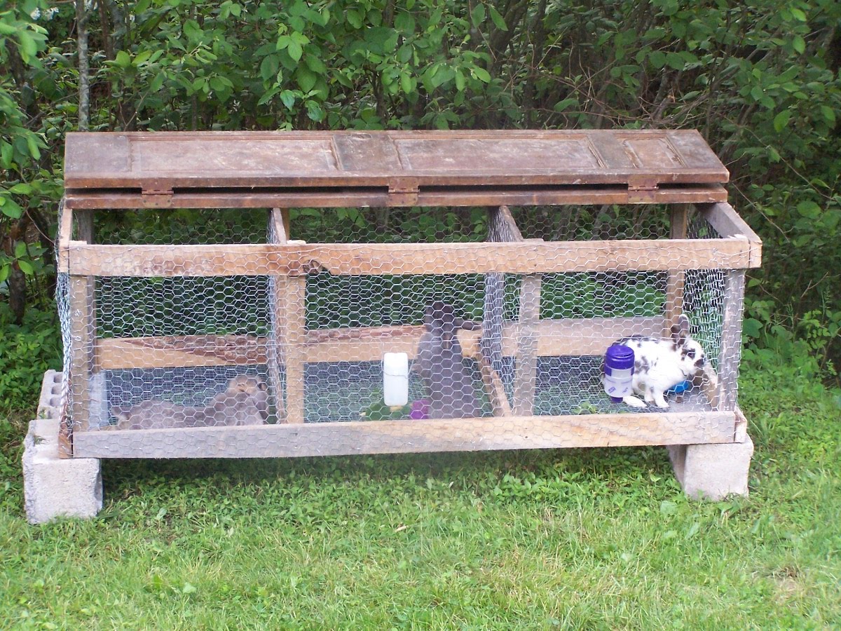 This is our new rabbit hutch in our backyard. That’s a hinged door on top. So we can fold back half of it, for access to the rabbits.