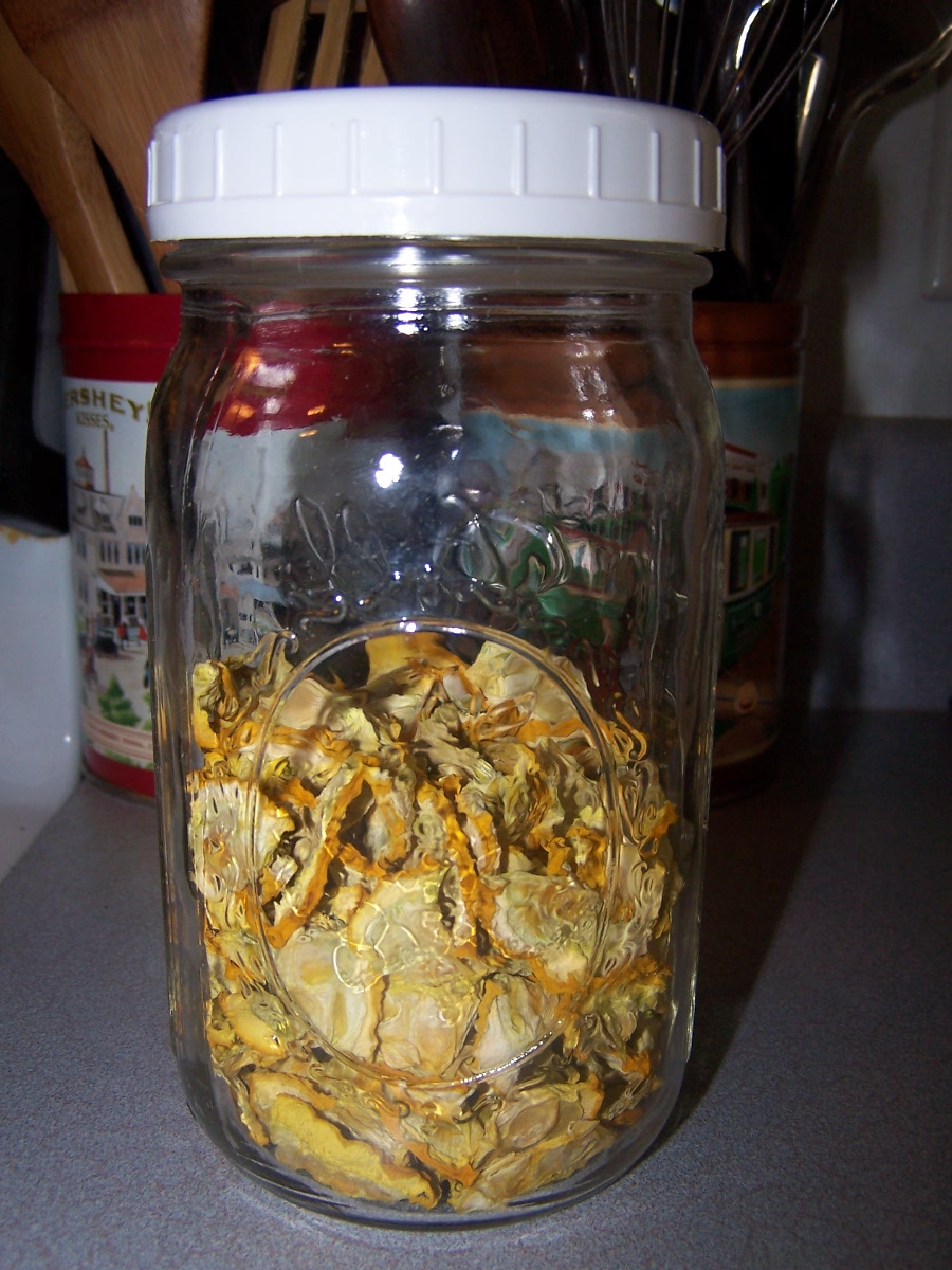I also worked on the yellow squash. I filled 3 dehydrator trays with the seedy parts of the squash. I do use these in soups in the winter, but I also re-hydrate and feed to the goats and chickens during the winter.