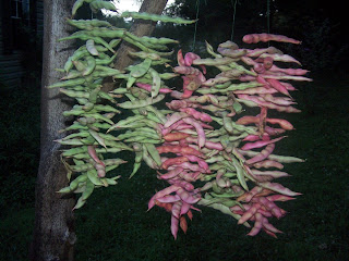 The other night, a neighbor brought us some “goose beans”. I had never heard of them before. He said you cook and eat them like green beans as long as the pods are green. When the start turning pink, you can’t eat the pod. Then you dry them, and  you cook and eat the dried bean, not the pod. We’re going to save some for seed, also, as our neighbor said you can’t buy goose beans anymore.