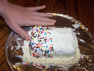 She only put sprinkles on half the “cake” so for those that didn’t want them. She used 3 pop-tarts and vanilla frosting layered. She had fun making it, and sharing it!