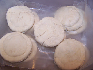 I also place the unfrozen biscuits in a freezer container, placing wax paper between layers.