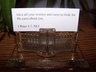 Every time I get my dusting mitt, out to dust, I think “Oh, I get to pick a new Bible verse today.” We have Scripture holder on top of the entertainment center in our living room. Every week, when I dust, I shuffle the Scripture cards and pick a new one. See?