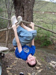 Hanging upside down from a tree counts as PE, right? lol The weather has been nice this week, so they have been playing outside a lot. Playing basketball & hide and go seek are the two favorites.