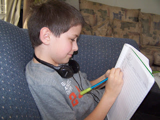 Zack likes to do his schoolwork on the couch. I was helping him with his math. He wasn’t listening to anything. In fact, the headphones weren’t even attached to anything. He was just wearing them. lol