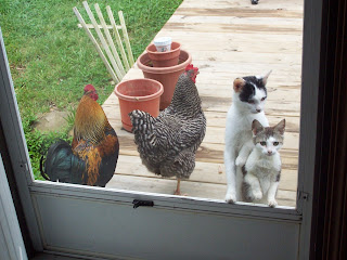 The animals love to look in the front door at us. The chickens even “knock”! |