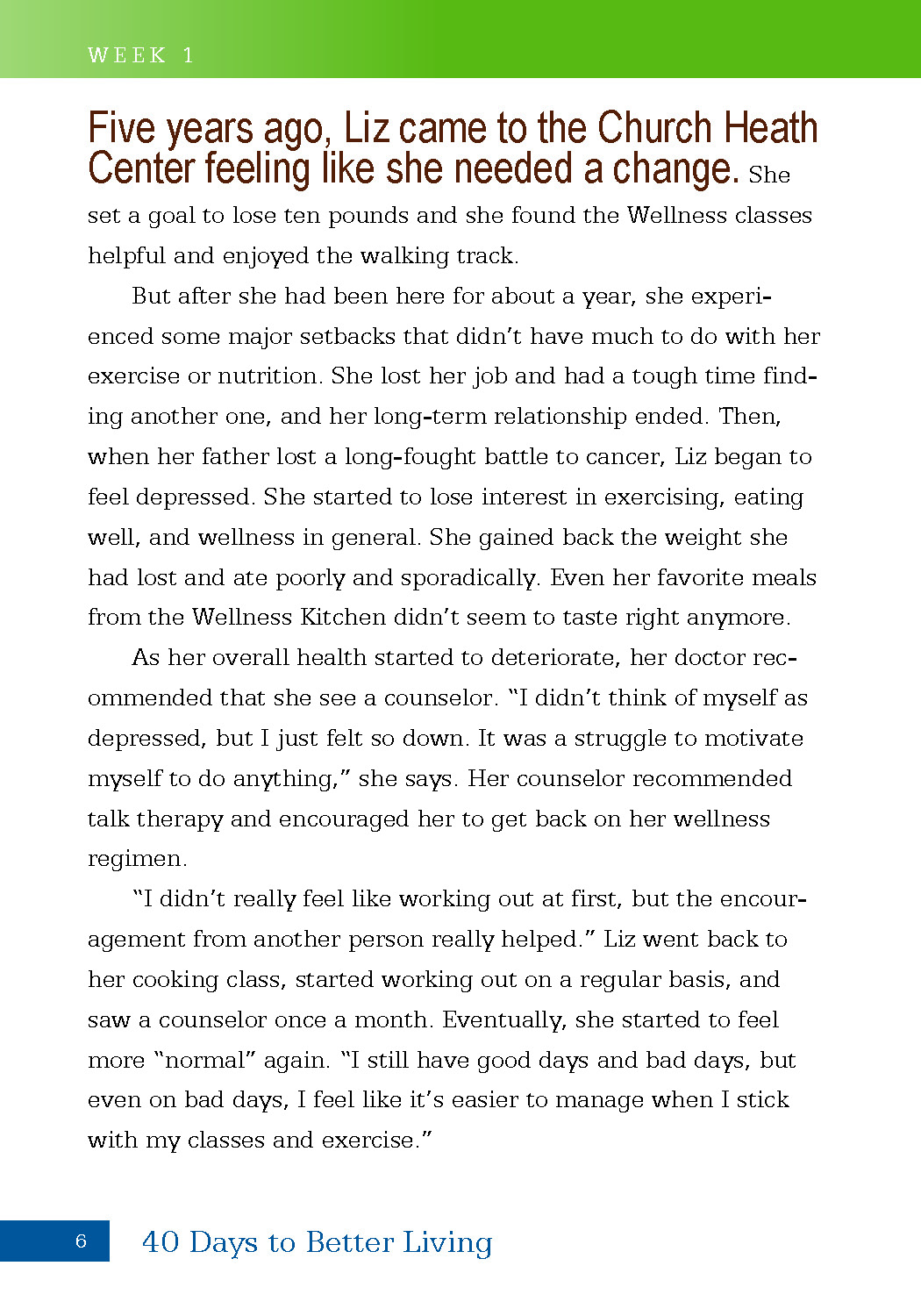 The 40 Days to Better Living series offers clear, manageable steps to life-changing attitudes and actions in a context of understanding and grace for all people at all points on the journey to optimal health. With plenty of practical advice, spiritual encouragement, and real stories of those who have found a better life, this simple and skillfully crafted book inspires readers to customize their own path to wellness by using the 7-Step Model for Healthy Living as a guide: