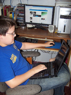 This was not staged. I really caught him using two computers at once!